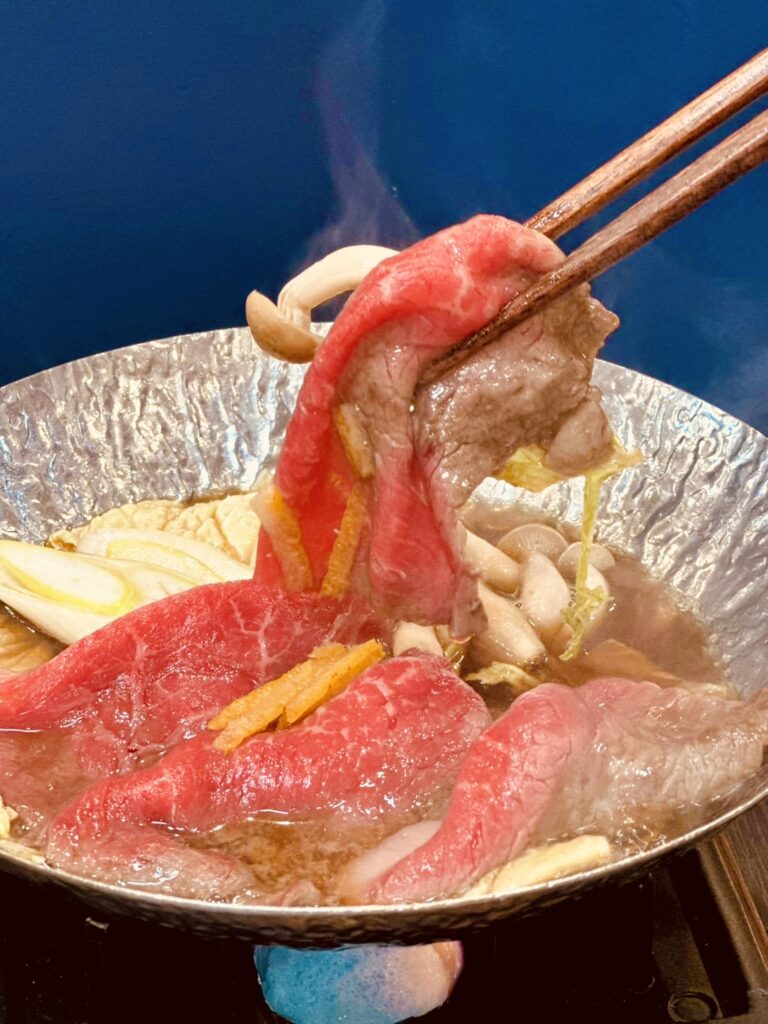 山梨県産ワインビーフを使用した牛なべを、